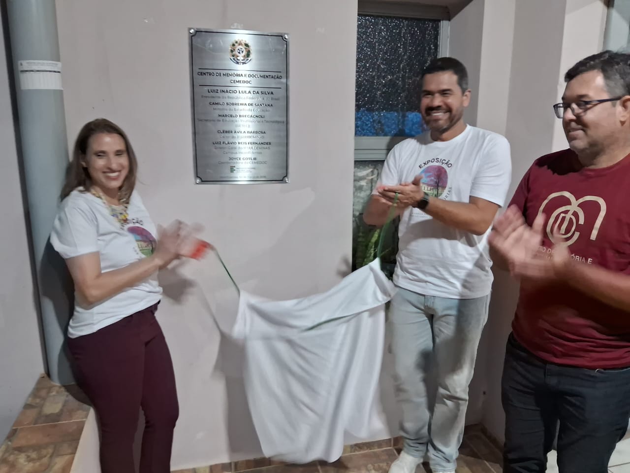 Durante o evento, o diretor-geral Luiz Flávio Reis Fernandes e o professor Giovane José da Silva realizaram o descerramento da placa do CEMEDOC, marcando simbolicamente o fortalecimento do espaço dedicado à preservação da memória institucional.